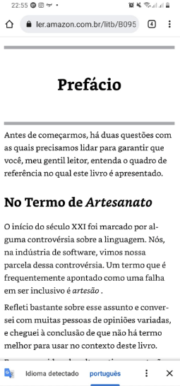 Para traduzir o livro, pode baixar a extensão do Chrome “Google Tradutor” ou usar o recurso do Chrome para traduzir para Português no menu.
